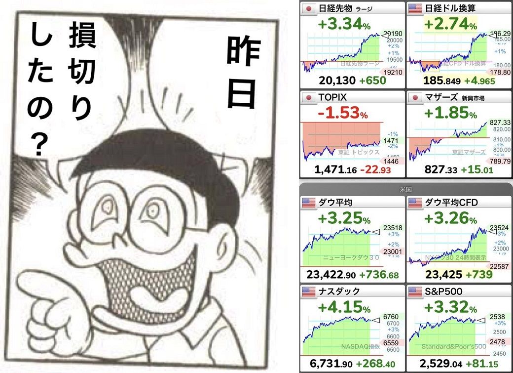 このボラティリティの過剰な大きさは、金融緩和+AI+取引環境の向上か。今後カウンターの動きも出てくるが、どう落ち着くのかさっぱりわからん。落ち着かないままガチャガチャ動きっぱなしかもしれないし。いずれにせよ人力トレーダーは刈り取られて養分になるだけね。