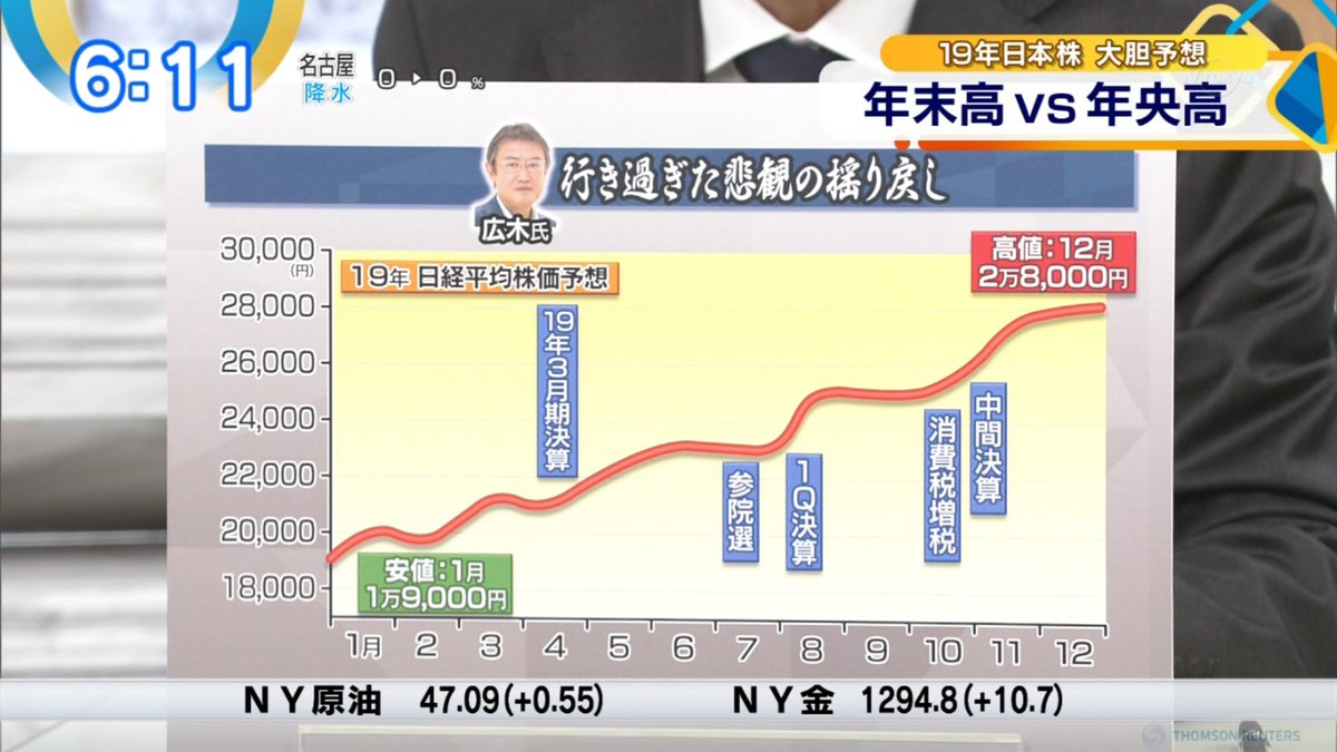 2019年日経平均株価予想 pic.twitter.com/kQwGS2dOMK— ケミ介 (@chemisuke_sikyo) 2019年1月3日
