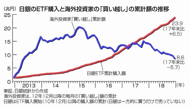 18年には海外投資家が売った株は買った株を5・7兆円も上回りました。