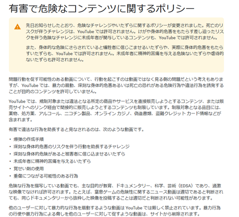 まさにYoutube側でも規約変更で、バカッターのイチかバチかのチャレンジと称した鉄砲玉行為はBANしていく方針に舵を切ったところみたいね。 pic.twitter.com/bchzKWLJoo