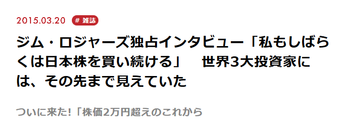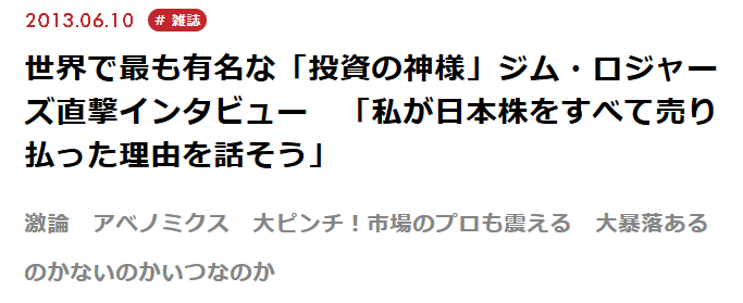 ( ´・ω・)ジム・ロジャーズみたいな嘘つきを信用するのはバカだろ。そもそも投資家が自分の手口を馬鹿正直に話すかよw