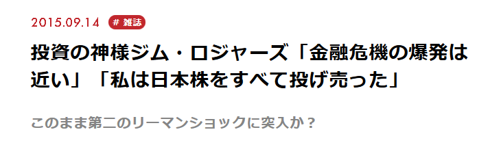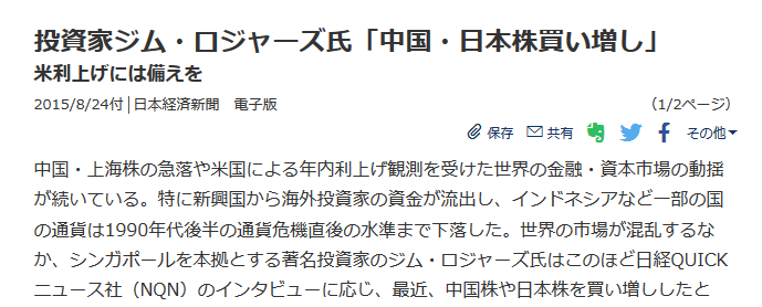 「日本株は7、8年保有してきたが、昨年秋に全て売った」「日銀が大量のお金を刷り続け、日本株や国債を買い支えているのも売りの理由」とロジャーズ氏 ーー 経済危機の火種、中国に ジム・ロジャーズ氏に聞く:日本経済新聞 https://t.co/qzTh4HZxQF