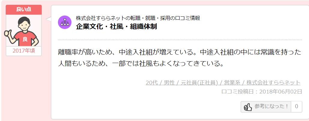 「中途入社組の中には常識を持った人間もいるため、一部では社風もよくなってきている」