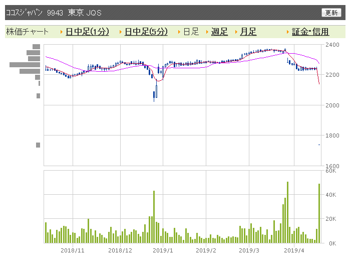 ココスにドラえもん解雇ショックと株主優待休止ショック