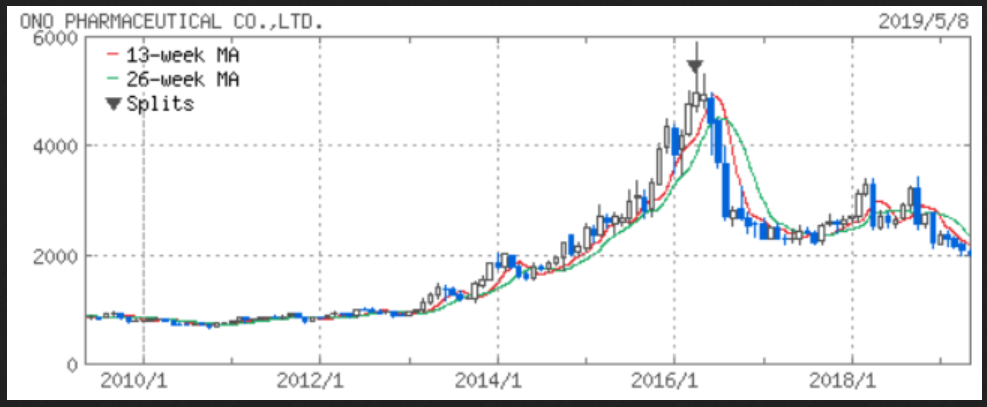 小野薬チャートだけで見ると、オプジーボなんてやらんかった良かったみたいなチャートやぞ pic.twitter.com/t0ZAGOjqJD