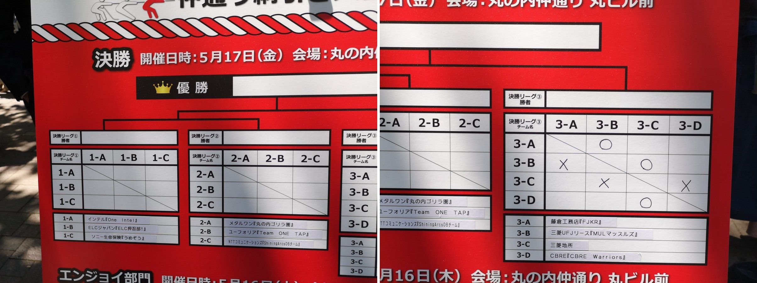 ※決勝トーナメントの結果「NTTコミュニケーションズ>CBRE>ソニー生命」