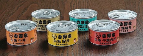 【非常食】吉野家が「牛丼の缶詰」を発売!非常用、常温保存で賞味期限3年で6缶セットで4860円!!