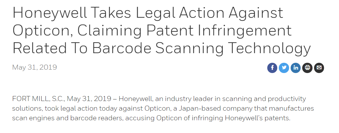 バーコードスキャナ分野はZebra社と、Honeywell社がシェア大半を占めてて、世界シェアは2%くらいだとか