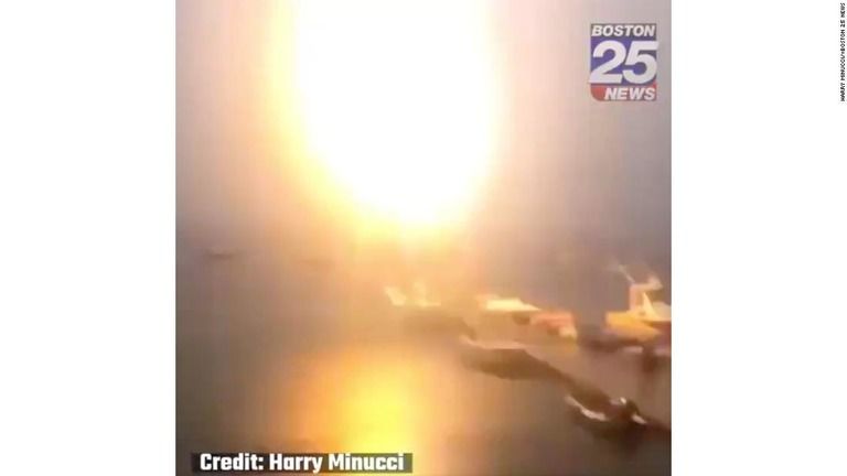 港に停泊しているボートに雷が落ちた瞬間の映像は、6日に通行人がボストン南部でとらえ、CNN系列局のWFXTが入手した。