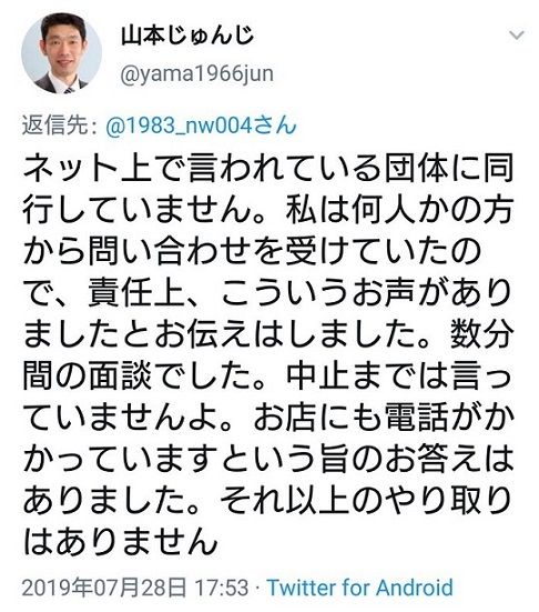 議員は「声」を伝えただけと言っているが、市議会議員がイベントの件で店に来れば、受け手は圧力と感じてもおかしくないのではなかろうか。