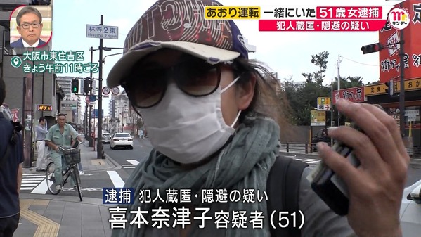 あおり運転の際に同乗していたとみられる会社員喜本奈津子容疑者(51)=大阪市東住吉区桑津1丁目=も、犯人蔵匿と犯人隠避の疑いで逮捕した。
