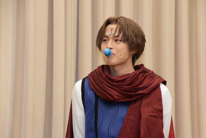 冨樫義博さんの人気マンガを原作とした舞台「幽☆遊☆白書」の会見と公開ゲネプロが8月28日、シアター1010(東京都足立区)で初日公演前に行われた。コエンマ役の荒木宏文さんは、本番と同じくおしゃぶりを口に加えて登場。マイクを口元の右に当てると「おしゃぶりが邪魔で、いつもとマイクの持ち方が違うんですが……」と苦笑いだった。