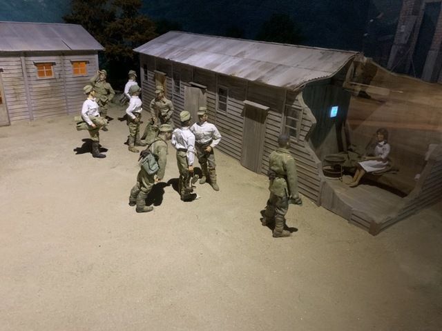 そしてその隣には、慰安婦の現場の模型が作られていた。粗末な小屋の中には、白い服を着た慰安婦が汚いベッドに座っている。小屋の前には日本兵たちがズラッと並んでいる。中には露骨に股間を触っている男もいる。戦時中の慰安婦の様子を描いた水木しげるの漫画で見たのと近い構図だが、もちろん立体になっているのは初めて見た。