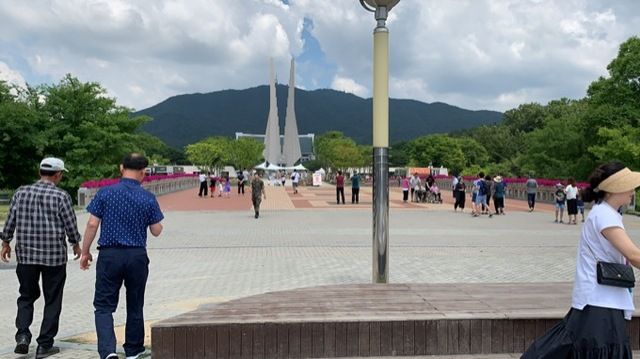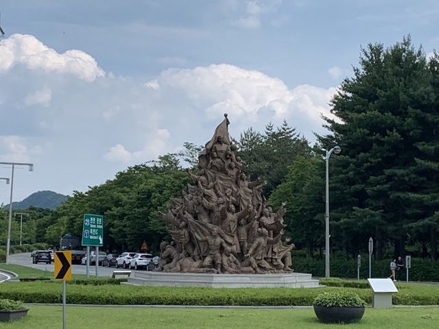 入り口は巨大な門になっていて、門の中に最初に紹介した像が設置してある。人々が重なりあって前を指差しながら進む勇ましい像だ。こういう群衆の像は、ソウルの博物館でも見たことがあった。