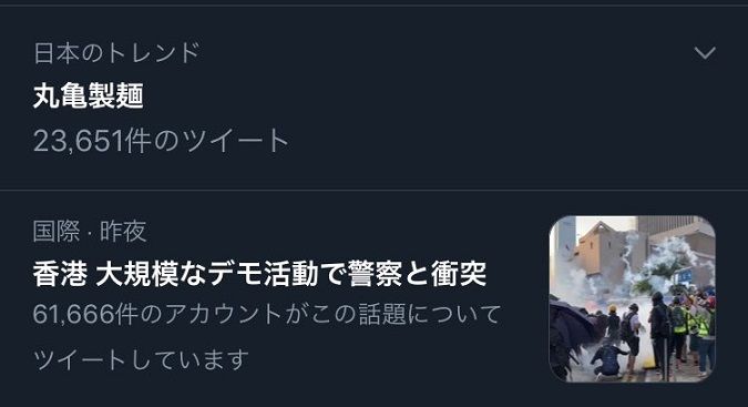 香港を香川と見間違えたのでついに香川県民が丸亀製麺への怒りを爆発させて大規模デモ起こしたのかと思った pic.twitter.com/7SPb6Rd3EW