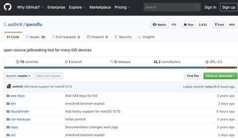 https://wired.jp/2019/09/29/ios-exploit-jailbreak-iphone-ipad/ GitHub - axi0mX/ipwndfu: open-source jailbreaking tool for many iOS devicesopen-source jailbreaking tool for many iOS devices - axi0mX/ipwndfu
