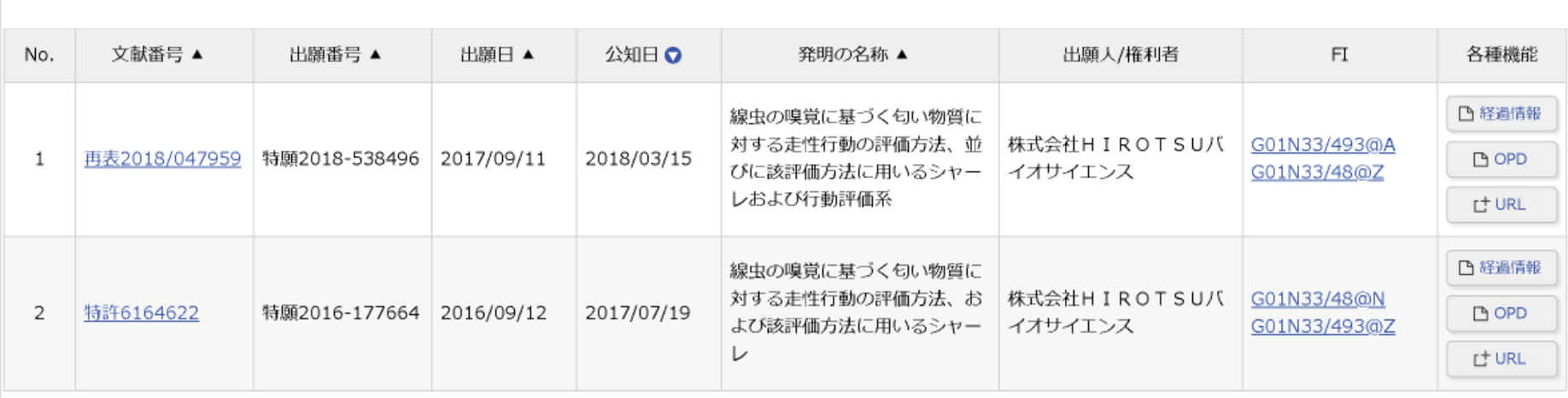 虫の習性では特許とれず、がん検診でも特許とれず。取ってる特許はこれだけ。