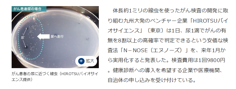 線虫でがん検査、2020年1月に実用化 約85%の確率で特定 九大発のベンチャー企業 #西日本新聞 https://t.co/s27mcEZZsO