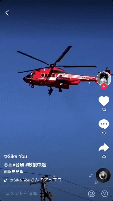 東京消防庁は13日、福島県いわき市で台風19号に伴う救助活動中、ヘリコプターにけが人の70代女性を収容しようとしたところ、誤って約40メートルの高さから落下させたと発表した。