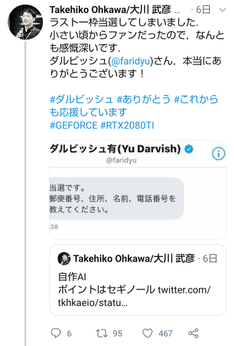 RTX2080Tiが有用なものだと理解したダルビッシュはすぐさま購入してプレゼントすると発表