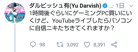 関連:【動画】ダルビッシュの生配信中にパソコンを買う放送が神回すぎると話題に : IT速報