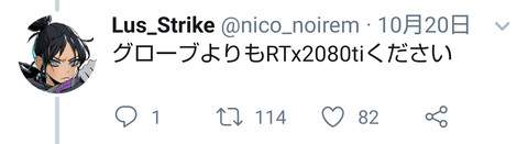 グローブじゃなくRTX2080Ti(20万円弱の超高性能なPC用グラボ)をくれというクソリプが付く