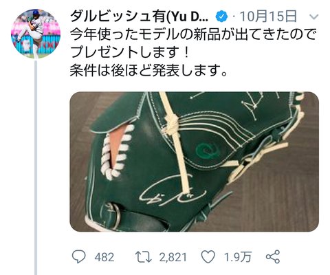 ダルビッシュが余ったグローブ(グラブ)をプレゼントするとTwitterで発表