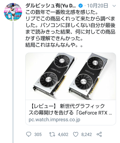 それを見ていたPC WatchがダルビッシュのためにPC専門用語を使わない一般向けのRTX2080Ti解説記事を書く