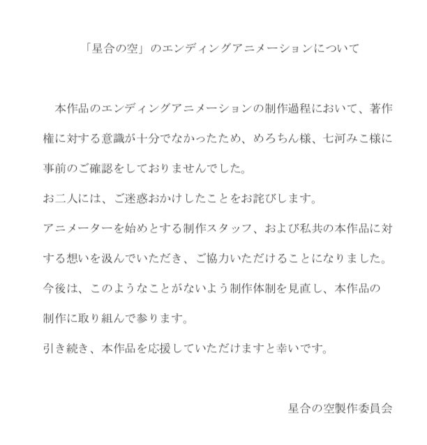 アニメのダンス酷似でTBS謝罪 - 「星合の空」エンディングhttps://t.co/NaEnIL89aE
