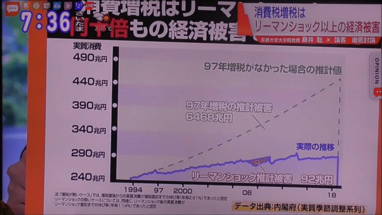 【マジ?】京大の試算「97年に消費税増税がなければ日本は凄い経済の伸び率記録してた」