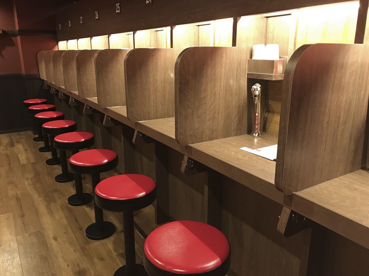 一蘭は隣席との間に仕切りを設けた「味集中カウンター」や、オーダー用紙で麺の固さや味の好みなどを伝えるシステムが特徴。
