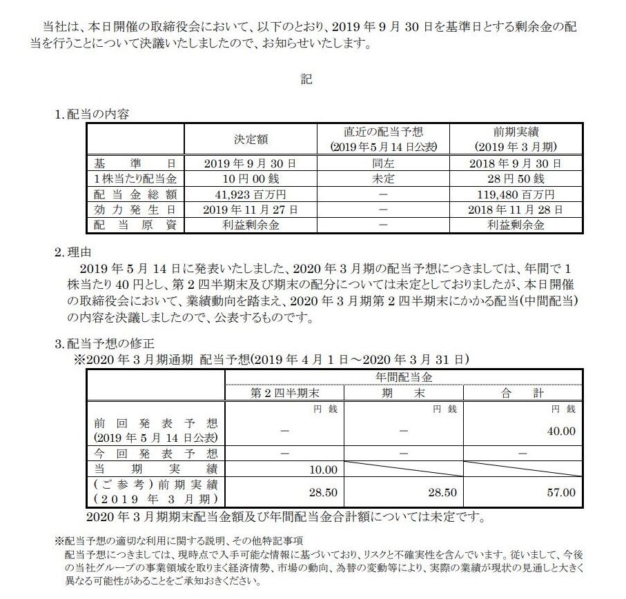 上半期20円が妥当だけど10円きた。下半期はまだ未定。