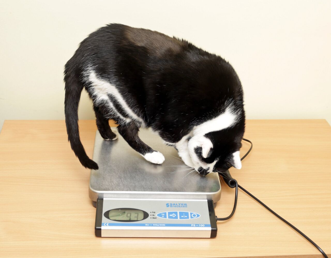 4歳のペイズリーは、猫の健康的な4キロの体重の2倍以上の体重を量りました。