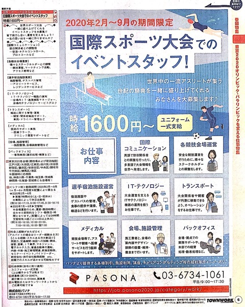 【朗報】五輪アルバイト、時給1600円で募集開始!ボランティアは0円で野宿しとけ