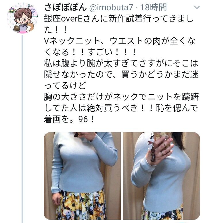 【悲報】女性がニットの試着レポをTwitterに投稿→男がコメント→メーカーブチ切れwww