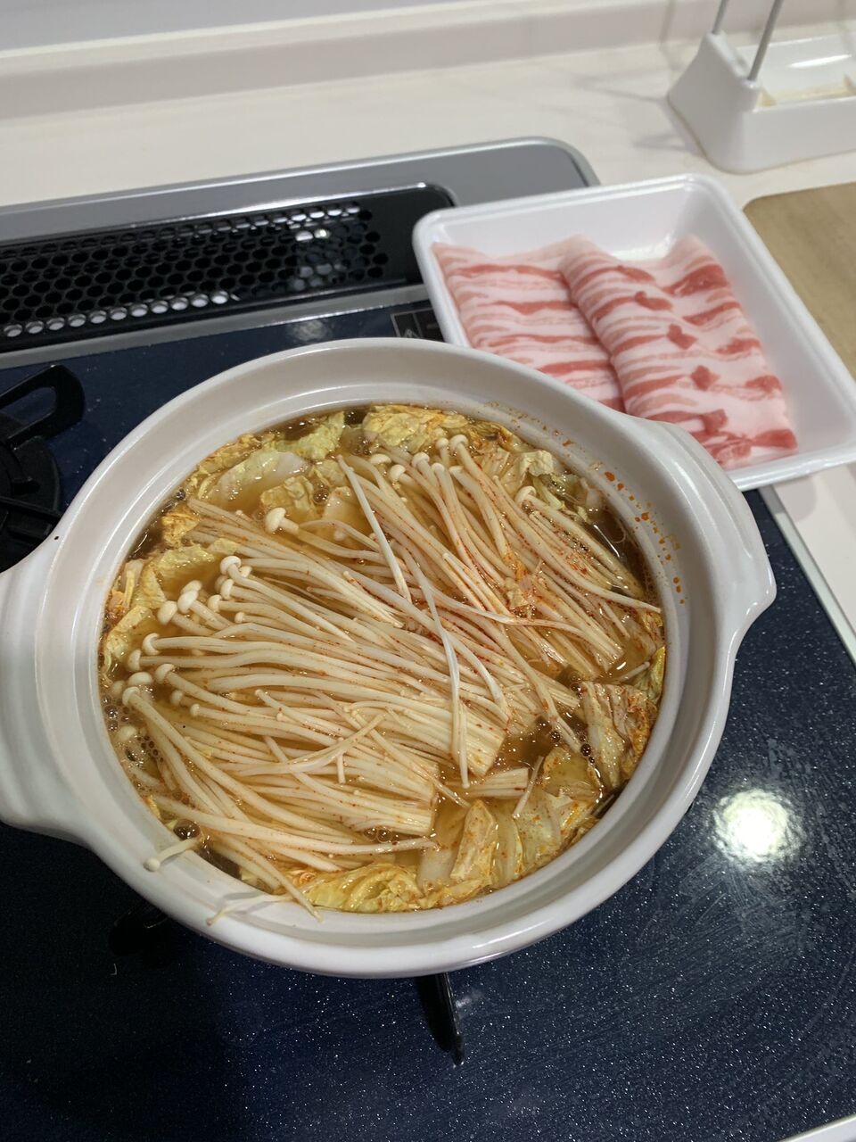 【画像】ワイ、朝からガッツリキムチ鍋を頂くww