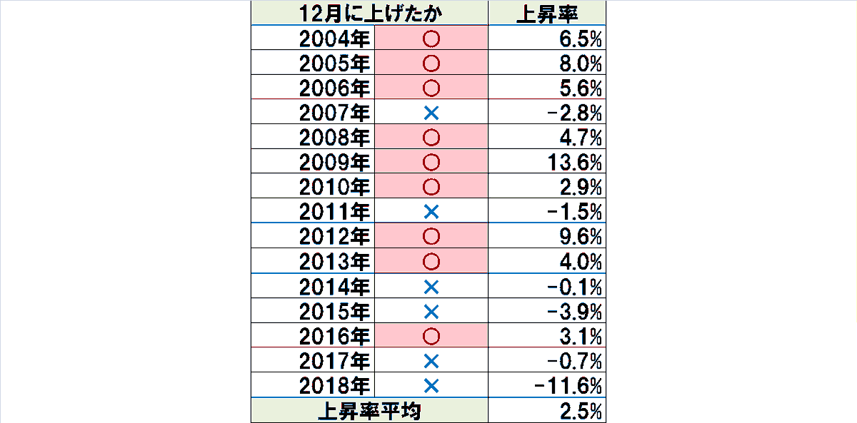 年末ラリーの締めとなる12月、これまでどのような動きをしていたか過去15年の日経平均勝敗データを取ってみましたの。
