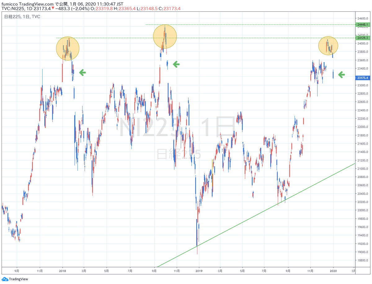 【悲報】日経平均さん、大発会からトリプルトップ形成して急落