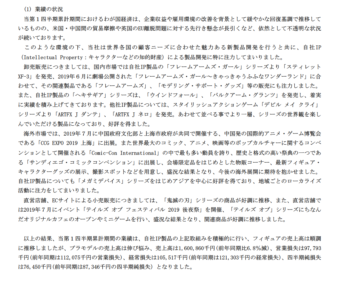 確かにIR検索すると鬼滅の刃フィギュアが好調とは書いてあったけど、3キャラしかないんだよ?— 新垣投資顧問 (@PockyGacky) 2020年1月6日