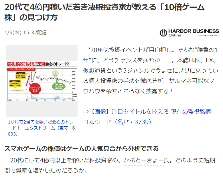 コムシードにイナゴ集結、ヤフーの「20代で4億円稼いだ若き凄腕投資家」煽り記事で