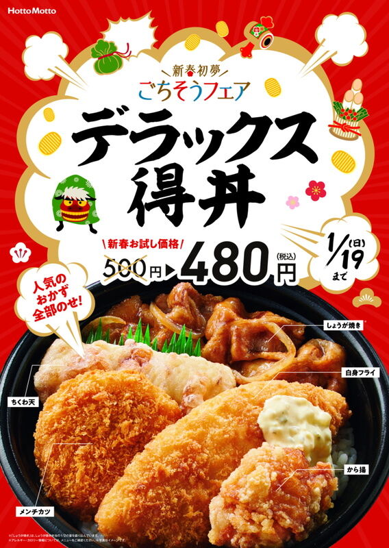 ほっともっとが税込500円の「デラックス得丼」を本日10日(金)発売~10日間は新春価格の税込480円