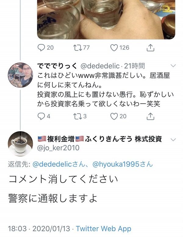 居酒屋で全員飲み物は水、貧乏性を極めた個人投資家の社会性に物議