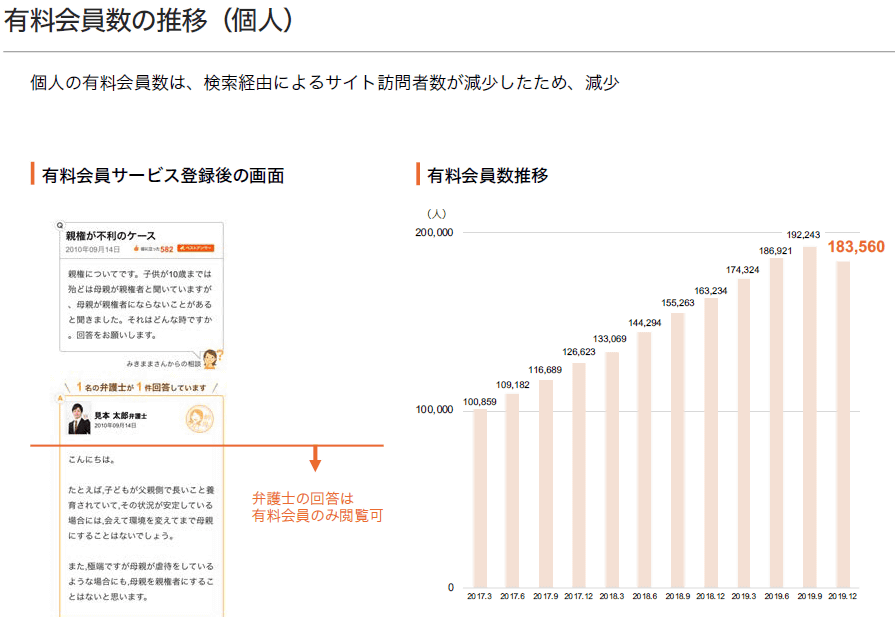 弁護士ドットコム、めっちゃ真面目にコツコツやってそうなのに、そんなに検索流入減ったんか。有料会員数もいきなり減りすぎやろ。https://t.co/Qku7lD1oRl pic.twitter.com/xOU1bdOwon