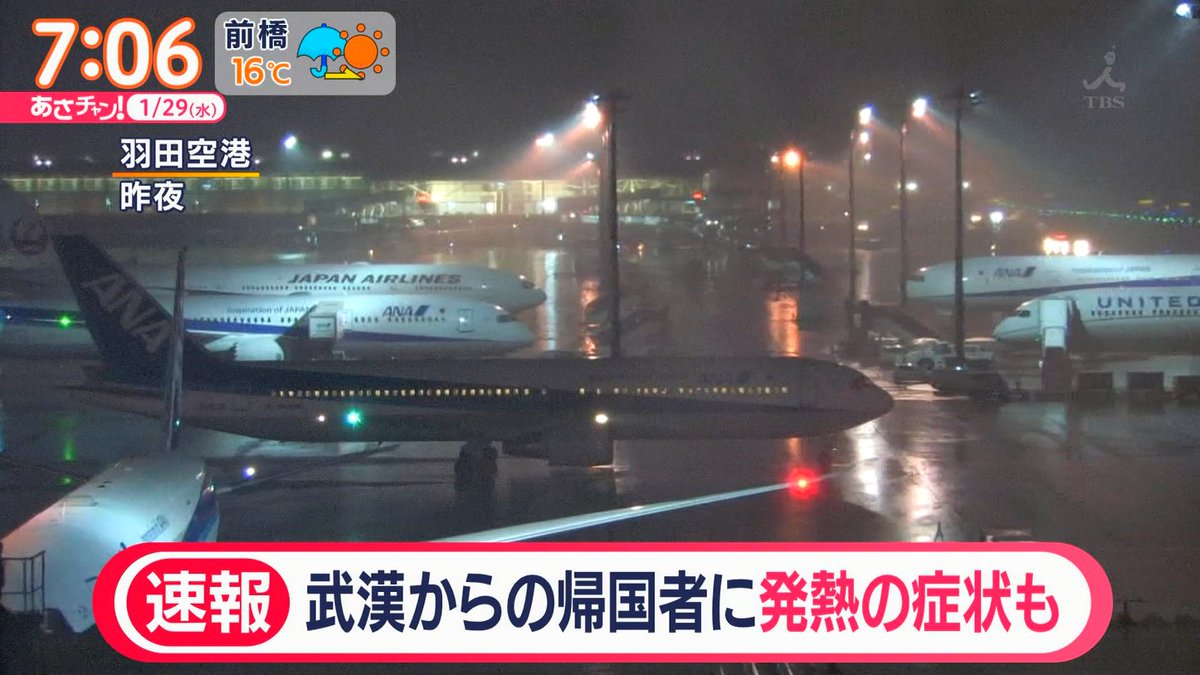 【速報】武漢からの帰国便に複数の発熱者