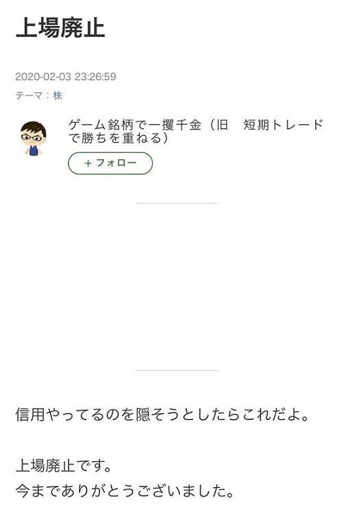 ※上場廃止予定— 矢澤にこ (@nicoDisclosure) 2020年2月5日