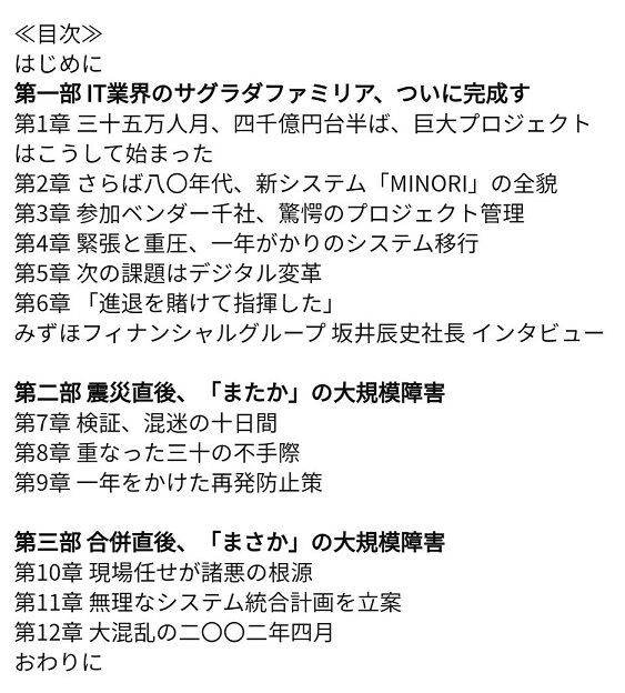 目次だけで胃が痛む「みずほ銀行システム統合、苦闘の19年史」、つまるところ「みずほのガバナンスの欠如」の災害史