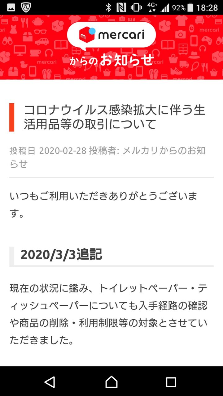 【神対応】メルカリさん、極めて迅速な対応でマスクとトイレットペーパーの出品を制限する