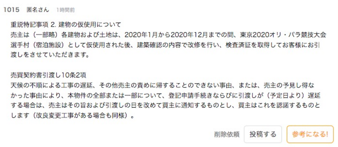 実際いかんよな。新築、未使用物件(但し選手村としての利用を除く)という条件で購入契約したんだから、緊急時とはいえ目的外利用するならキャンセル返金は認めないとおかしい。