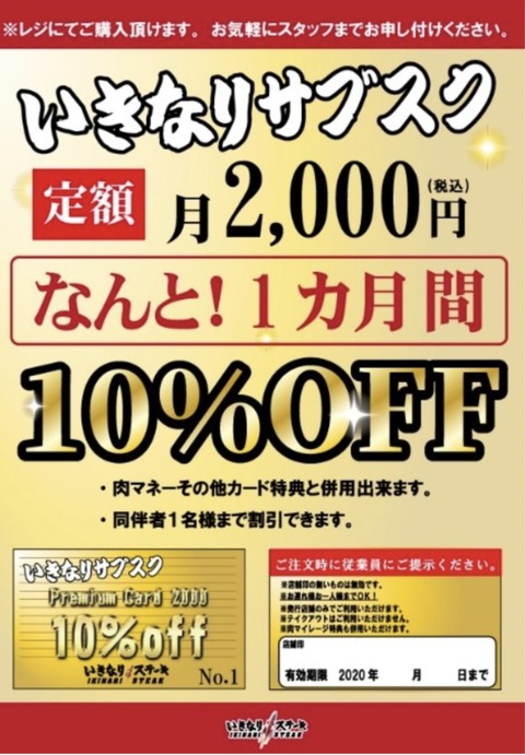 【速報】いきなりステーキがサブスク開始!なんと一ヶ月間…