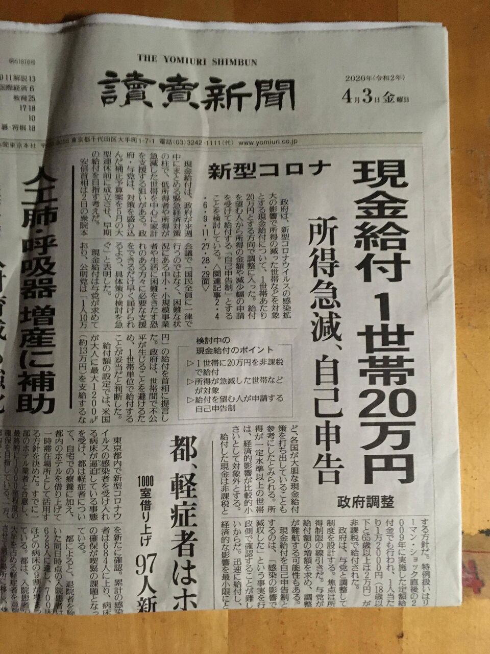 【速報】一世帯に20万円支給で確定